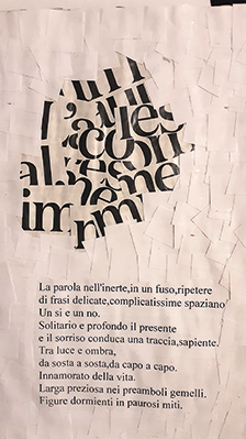 «L’arte, quella che mi ha accompagnato nell’arco di tutta la mia vita» spiega «è stata la mia ricerca, spaziando tra le varie tecniche: disegno, grafica, pittura, poesia. Ma l’atto di congiunzione è stata la tecnica del collage, che iniziò nell’arte storicizzata del secolo passato, con i cubisti, i futuristi, i dadaisti, surrealisti, a seguito la pop art, l’arte postale, i poeti visivi, continuando con metodi più tecnologici, tipo computer, video art, fino ad adesso con l’intelligenza artificiale. Ho sempre amato comporre senza limiti su foglio o tela. Con la pittura informale del primo periodo, anni Ottanta, non ne facevo uso. Anche nel Duemila, quando mi dedicavo alla grafica e al disegno, la tecnica del collage era marginale, ininfluente. Tuttora nella pittura a olio la uso, ma è solo un modo di interpretare l’immagine, la forma, i disegni non sono incollati ma tutti dipinti». Dal 1982 a oggi ha al suo attivo diverse pubblicazioni di raccolte di poesie, esposizioni collettive e personali di pittura e arte varia in diverse città in Italia e all’estero (Stati Uniti, Messico, Brasile, Polonia). «Ma non abbandono Agliana» afferma. «Mi piace esporre negli spazi più diversificati del territorio aglianese».