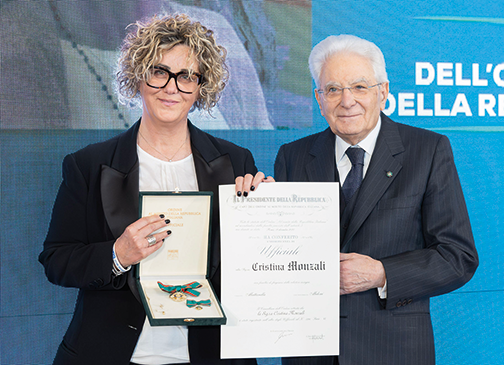 “Cristina” si legge nella motivazione, “assieme al marito, ha creato l’Associazione Giak nuotatore volante, continuando a trasmettere i valori e le passioni del figlio, scomparso in un incidente con l’aliante, aiutando i giovani talenti nello svolgimento delle attività quali l’ippoterapia e l’istituzione di borse di studio per progredire negli studi”. Cristina era accompagnata dal marito Gennaro Di Napoli, entrambi emozionatissimi. «Che emozione indescrivibile entrare nel Palazzo del Quirinale» ha raccontato Cristina Monzali «e ricevere, con il cuore colmo di gratitudine, l’Onorificenza “Motu Proprio” di Ufficiale al Merito della Repubblica Italiana dalle mani del Presidente Sergio Mattarella. Un istante che porterò per sempre con me. Un riconoscimento che non è solo mio, ma di tutti coloro che ogni giorno scelgono di amare attraverso la generosità e l’impegno. Lo condivido con mio marito Gennaro, con i sostenitori dell’Associazione e con i nostri meravigliosi ragazzi, che trasformano ogni progetto in speranza concreta. E poi, il mio grazie più profondo va al mio unico figlio Giacomo. È la nostra stella polare. Continua a guidarci, a indicarci la rotta anche nei momenti più difficili. La sua luce è il senso di tutto. Indimenticabili le parole del Presidente: “L’amore è impegno”. Un amore che diventa scelta quotidiana, servizio, responsabilità».
