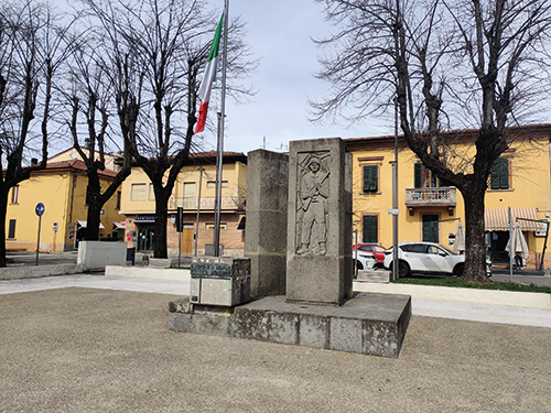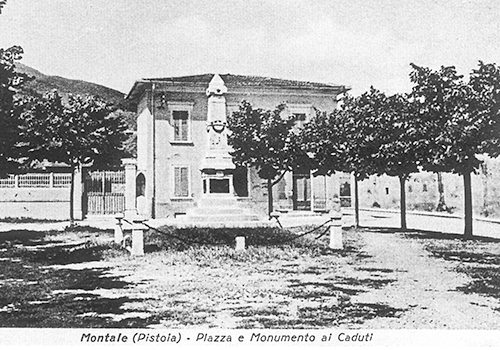 Nell’archivio storico del Comune di Montale i documenti che parlano del primo monumento ai caduti, dedicato ai montalesi morti nella Grande Guerra, sono entrambi del 1922, uno del luglio e uno del dicembre, prima e dopo l’avvento del fascismo avvenuto nell’ottobre di quello stesso anno. Quello di luglio è una delibera di giunta che dispone l’ampliamento della piazza per renderla più adatta ad ospitare il monumento ai caduti, la cui realizzazione è iniziativa di un Comitato presieduto dall’esponente del partito fascista locale Giulio Diddi, mentre il Partito Nazionale Fascista si impegna ad accollarsi le spese.