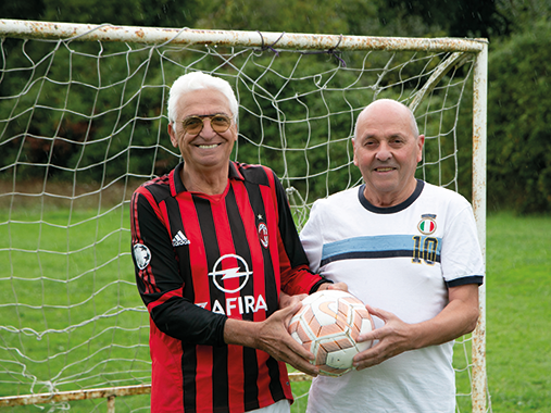 Che il calcio sia soprattutto “passione” è qualcosa di assodato, e si sente dire da chiunque indossi le scarpe con i tacchetti, anche solo per fare la partitella la sera dopo cena. Ma nel caso di Aldo Angioli e Cristofaro “Tonino” Muraca, dovremmo trovare un sostantivo più efficace e significativo, dato che alla bella età di ottantanni (“Tonino” in verità ne ha settantanove ndr), continuano a tirare calci al pallone. O meglio: Aldo continua tutt’ora e non intende smettere, mentre il suo compare ha appena appeso le scarpe al chiodo. Noi siamo andati a trovare questi due amici storici, nella frazione di Santonuovo dove abitano e, guarda caso, ci siamo trovati davanti a due arzilli nonnetti pronti a raccontarci la loro storia, che poi si intreccia indissolubilmente con la creazione del campo da calcio dietro le scuole elementari. Aldo è stato un fiume in piena fra ricordi e risate, mentre “Tonino” è rimasto più pacato; d’altronde le coppie più durature sono quelle che si compensano a vicenda, giusto?